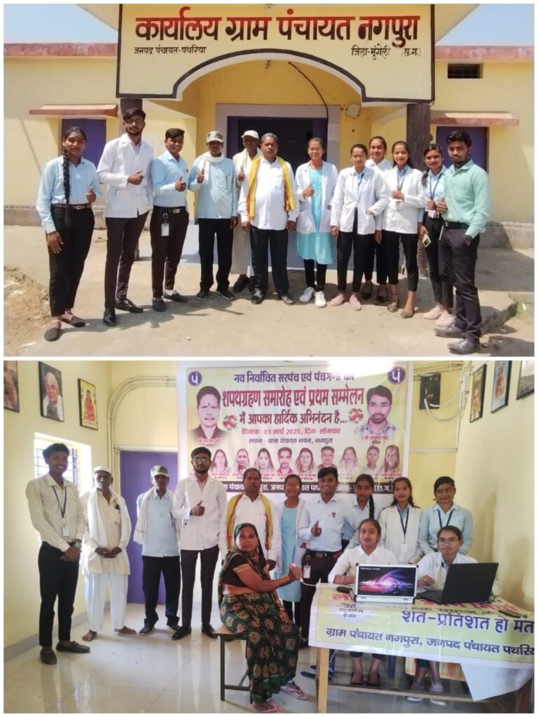 दिनांक 11 मार्च 2025 को एम वाई एल ऑर्गेनिक संस्था द्वारा ग्राम पंचायत नगपुरा और ग्राम मोतिनपुर में स्वास्थ्य शिविर का आयोजन किया गया जिसमें ग्राम पंचायत नगपुरा और मोतिनपुर के सरपंच महोदय श्री प्रहलाद पोते जी और कोटवार श्री स्वरूप दास एवं अनूप दास के मार्गदर्शन में किया गया जिसमें एम ए एल संस्था के सीनियर्स मिस्टर