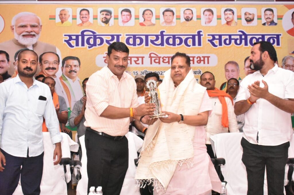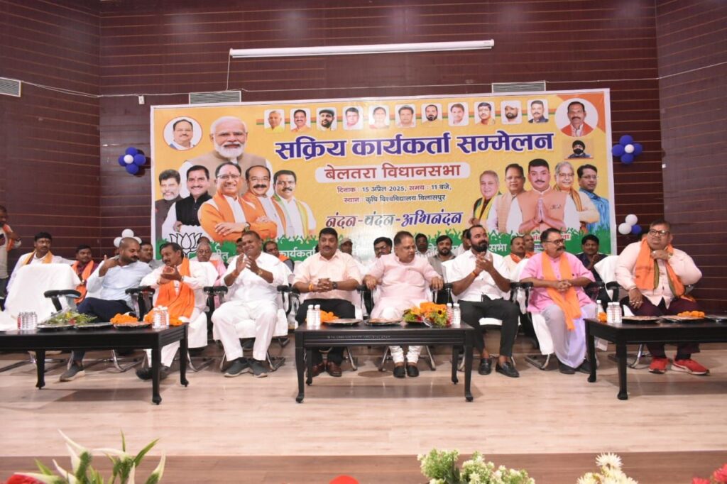आज विधानसभा बेलतरा में भाजपा के सक्रिय सदस्यों का सम्मेलन आयोजित की गई पार्टी के निर्देशानुसार भाजपा के स्थापना दिवस पखवाड़े कार्यक्रम के अंतर्गत सभी विधानसभा में भाजपा के सक्रिय सदस्यों का सम्मेलन कर कर उन्हें पार्टी के रीति नीति से अवगत कराना एवं जनसंघ से लेकर आज तक भाजपा के विकास और इतिहास की जानकारियां दी जा रही है इसके साथ ही भारतीय जनता पार्टी के कार्यकर्ताओं को केंद्र सरकार एवं राज्य सरकारों द्वारा संचालित विभिन्न जनकल्याणकारी योजनाओं के वजह से समाज में हो रहे सामाजिक आर्थिक और राजनीतिक परिवर्तन से कार्यकर्ताओं को अवगत कराने की योजना है कोनी स्थित कृषि विश्वविद्यालय सभागार में आयोजित इस सम्मेलन में बिल्हा विधायक धरमलाल कौशिक बिलासपुर विधायक अमर अग्रवाल जिलाध्यक्ष मोहित जायसवाल दीपक सिंह शामिल हुए कार्यक्रम के उद्घाटन सत्र में विशिष्ट अतिथियों द्वारा भारत माता, छत्तीसगढ़ महतारी और भाजपा के प्रेरणा पुरुष डॉ श्यामा प्रसाद मुखर्जी पंडित दीनदयाल उपाध्याय जी की प्रतिमा पर दीप प्रज्वलित कर पुष्पांजलि अर्पित की गई