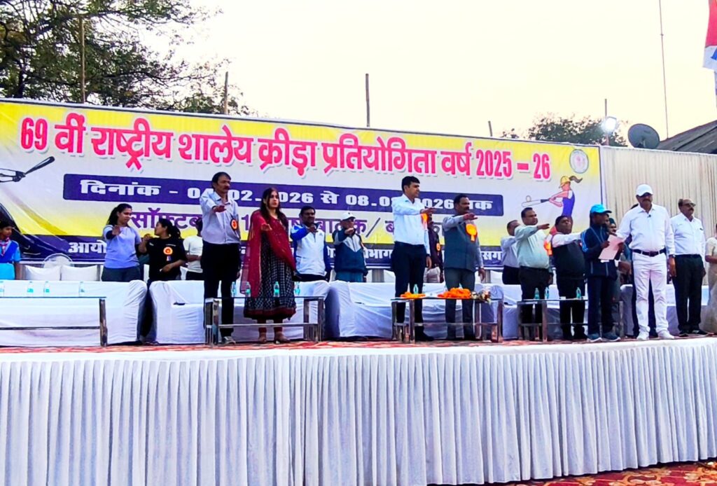 बिलासपुर 04 फरवरी 2026/छत्तीसगढ़ की न्यायधानी बिलासपुर को 69वीं राष्ट्रीय शालेय क्रीड़ा प्रतियोगिता (2025-26) के आयोजन का गौरव प्राप्त हुआ है। 04 फरवरी से आयोजित सॉफ्टबॉल (17 वर्ष बालक/बालिका) स्पर्धा का विधिवत शुभारंभ मुख्य अतिथि जिला पंचायत अध्यक्ष राजेश सूर्यवंशी के कर-कमलों द्वारा किया गया। इस अवसर पर सीईओ जिला पंचायत श्री संदीप अग्रवाल मौजूद रहे।