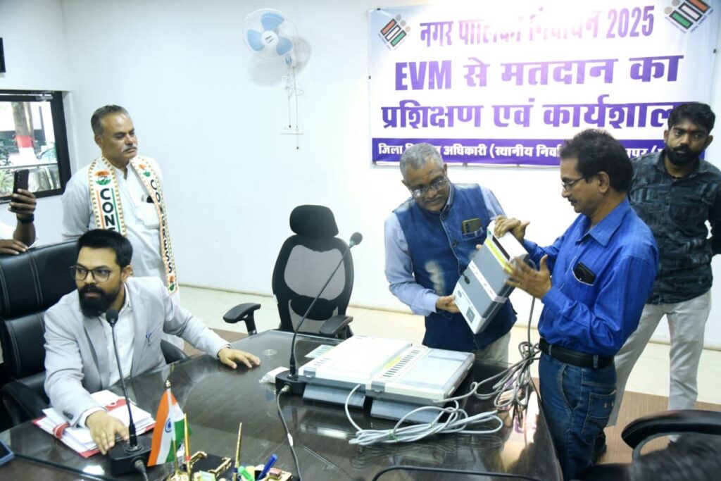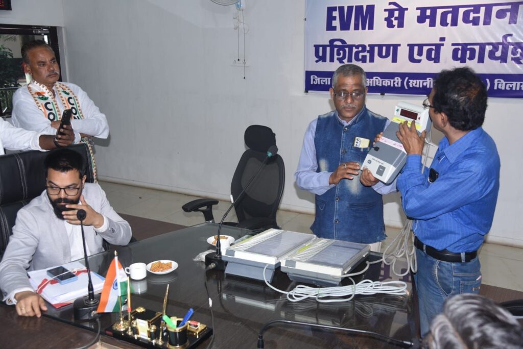 11 फरवरी को होने वाले नगरीय निकाय चुनाव के लिए मतदान की तैयारियां जिला प्रशासन द्वारा जोर-शोर से की जा रही है। ईवीएम से मतदान के विषय में उचित जानकारी देने के लिए जिला निर्वाचन कार्यालय द्वारा व्यापक प्रचार किया जा रहा है। इस संबंध में जानकारी देने के उद्देश्य से राजनैतिक दलों के प्रतिनिधियों और मीडिया प्रतिनिधियों के लिए कार्यशाला का आयोजन मंथन सभाकक्ष में किया गया। उप जिला निर्वाचन अधिकारी श्री शिवकुमार बनर्जी की उपस्थित में मास्टर ट्रेनर श्री मनोज सनाढ्य के द्वारा सघन रूप से ईवीएम से मतदान का प्रशिक्षण दिया गया व डेमो के जरिए प्रशिक्षण मतदान प्रक्रिया की जानकारी दी गई।