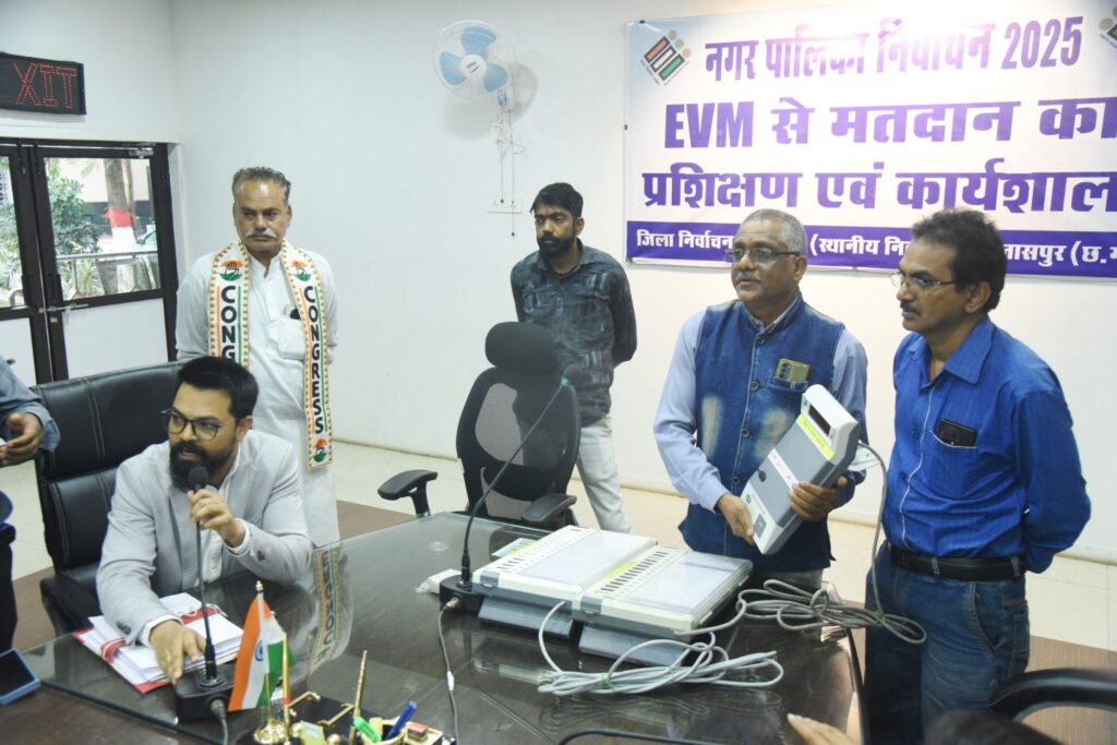 बिलासपुर, 01 फरवरी 2025/नगरीय निकाय चुनाव के लिए ईवीएम से मतदान प्रक्रिया के विषय में जिला निर्वाचन अधिकारी श्री अवनीश शरण के निर्देश पर कार्यशाला का आयोजन किया गया। कार्यशाला में राजनैतिक दल के प्रतिनिधियों और मीडिया प्रतिनिधियों को ईवीएम से मतदान के विषय में विस्तृत जानकारी दी गई व शंकाओं का भी उप जिला निर्वाचन अधिकारी द्वारा समाधान किया गया।
